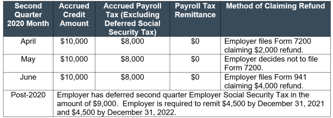 - The employer elects to defer all Employer Social Security Tax payments and deposits until after 2020, which is an amount equal to $3,000 per month in second quarter 2020.