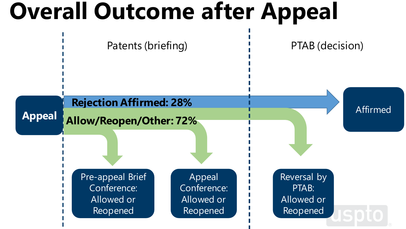 - Overall: 72% of appeals are allowed, reopened, or have an action other than affirming final rejection.